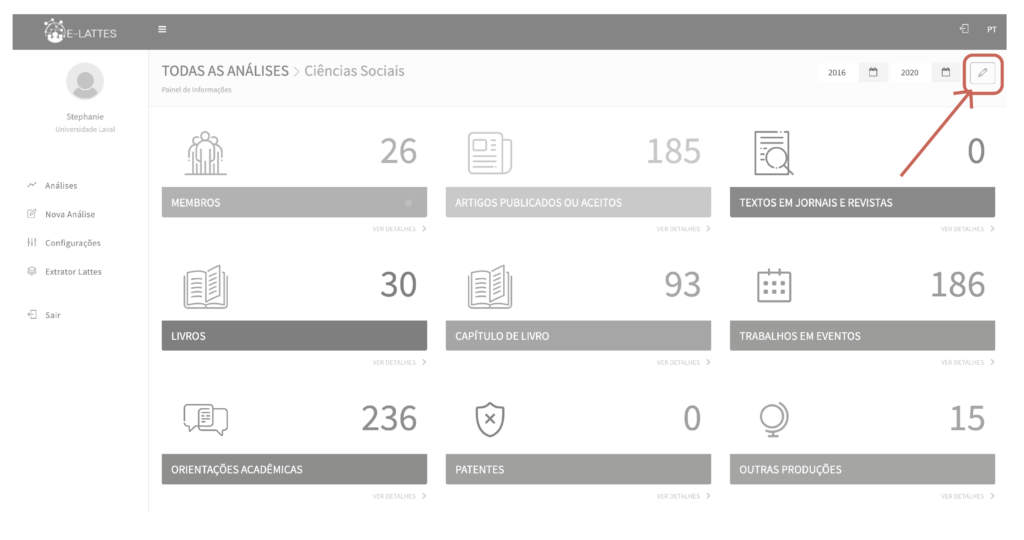 - na página Todas as análises , clique no botão Editar a análise , referente à análise desejada;