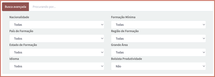 A busca avançada permite refinar a busca, com oito filtros. Para isso, clique no botão Busca avançada .