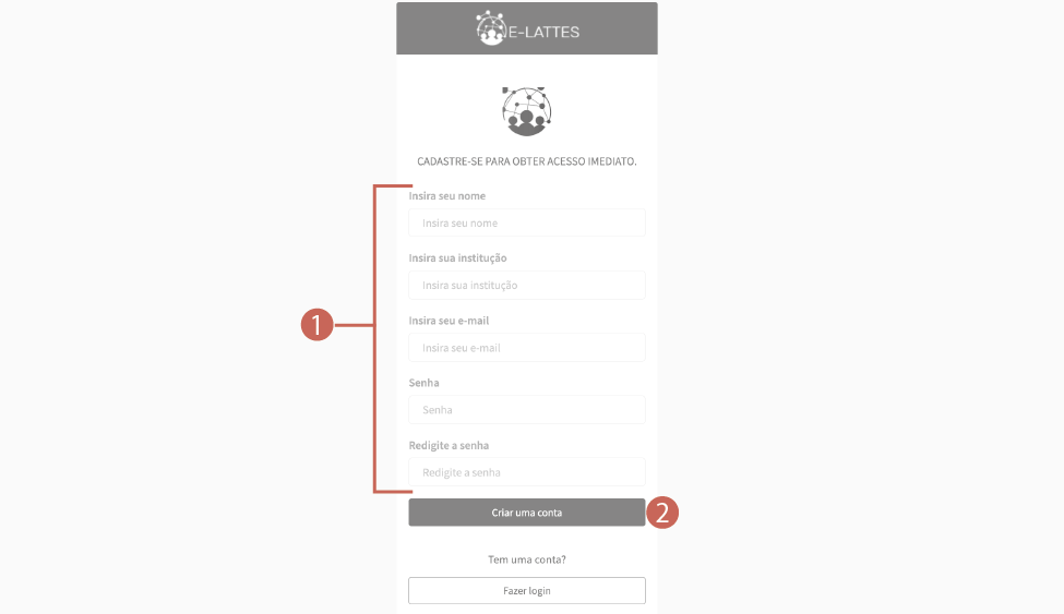 Na tela de cadastro, preencha os diferentes campos, com seus dados: