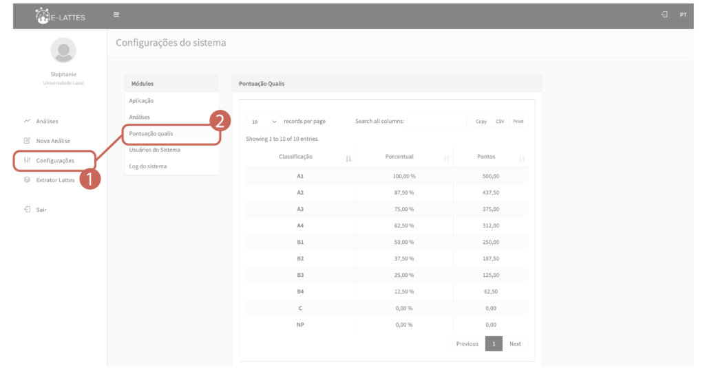 Definir pontuações para classificação Qualis